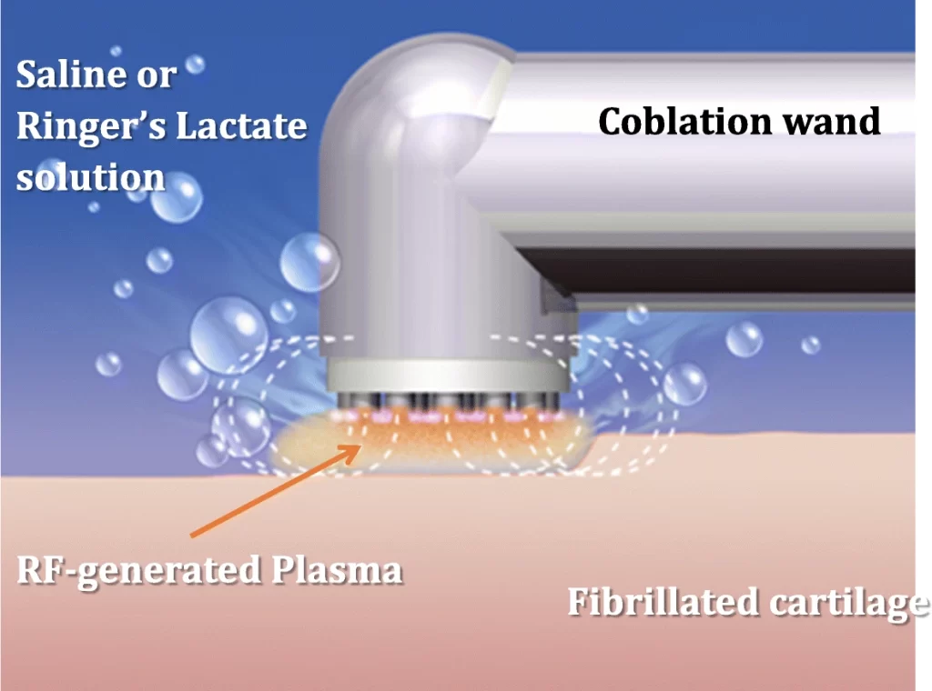 Coblation significa ablação controlada do tecido por um campo de plasma criado na ponta do instrumento em solução salina. Diferente do bisturi elétrico convencional, a energia atua em temperaturas mais baixas, desagregando ligações moleculares do tecido em vez de queimar, reduzindo dano térmico colateral e preservando planos anatômicos.