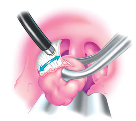 A radiofrequência é uma corrente alternada que, ao interagir com soro fisiológico, forma um plasma estável que fragmenta o tecido alvo com excelente hemostasia. O controle de potência e a irrigação contínua mantêm o campo limpo e mais frio, favorecendo uma dissecção delicada e visão nítida durante todo o procedimento.