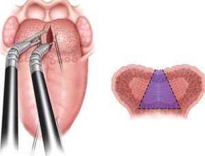 A amigdalectomia lingual robótica visa a remoção do tecido hipertrofiado na base da língua, incluindo as tonsilas linguais. O procedimento pode remover até 20 gramas de tecido, conforme necessário, baseado na anatomia do paciente e grau de colapso durante o sono.